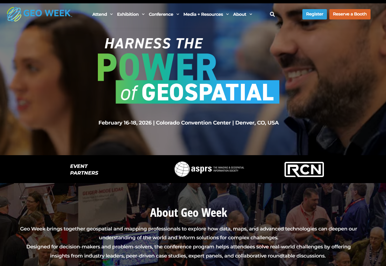 Geo Week brings together geospatial and mapping professionals to explore how data, maps, and advanced technologies can deepen our understanding of the world and inform solutions for complex challenges. Designed for decision-makers and problem-solvers, the conference program helps attendees solve real-world challenges by offering insights from industry leaders, peer-driven case studies, expert panels, and collaborative […] |